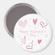 Esta imã de geladeira apresenta rabiscos cardíacos de amor bonitinhos em tons de rosa, com as palavras Feliz dia de os namorados centradas no meio.