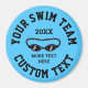 Imã de geladeira personalizada da equipe de natação para nadadores. Adicione seu próprio texto personalizado. Design moderno com logotipo de óculos de natação ou ícone personalizado. Fundo de cor da piscina azul. Crie seus próprios favoritos para festas e presentes em massa.