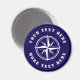 Imã de geladeira personalizada da estrela de bússola náutica. Faça sua própria chaveiro para marinheiro, capitão de barco, pai, amigo, capitão, chefe, colega de trabalho etc. Ícone marítimo azul e branco do marinho com texto em negrito.