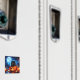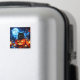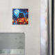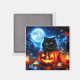 O ímã é mostrado com uma impressão de arte de Halloween de um gato preto sentado na abóbora.