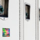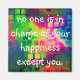 O ímã de encorajamento da felicidade é feito em um abstrato de cor arco-íris como ele diz "ninguém está encarregado de sua felicidade exceto você."