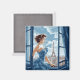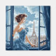 Este ímã é mostrado com uma linda moça em uma impressão de arte de Paris.