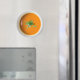 Um ímã de sopa de tomate cremosa para sua geladeira. Isso foi feito a partir de uma fotografia real.