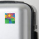 Um design de natureza ranhosa de um sol sobre um rio que flui através de montanhas feitas em cores néon brilhantes em um ímã
