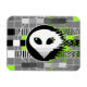 ATENÇÃO AOS TERREIROS! O cartão de teste de TV retrô legal inspirou um design com uma face de alienígena estilizada e interferência extraterrestre em tons de preto, branco, cinza e verde. Um design personalizável para você personalizar com seu próprio texto, imagens e ideias. Uma imagem de arte digital original criada por Jess Perry.