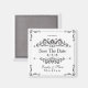 Imã salve a data para o frigorífico indicada. Esta é quadrada e mostrada em um tema de vintage preto e branco floresce. Texto pré-formatado para personalizar com nomes e data. Personalize este item e altere o texto para o seu. Imagem do stock freepik.com