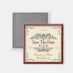 Imã salve a data para o frigorífico indicada. Esta é quadrada e mostrada num tema de hambúrdia, marfim e vintagem negra florescem. Texto pré-formatado para personalizar com nomes e data. Personalize este item e altere o texto para o seu. Imagem do stock freepik.com