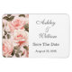 Este ímã flexível Salvar a Data é mostrado em um layout formal clássico na cor branca com texto de cinza e texto de script destacando os nomes de Noiva e Almoço e acentuado com um adorável impressão de rosa rosa rosa. Personalize este item e personalize o texto para o seu com este modelo.