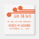Imã salve a data simples moderna e sofisticada, em laranja, com um par de embelezamentos do círculo de deco-art na moda. Esta imã salve a data de na moda é perfeita para anunciar o seu casamento inspirado no decreto de arte elegante. Fácil de personalizar, basta adicionar os detalhes do seu casamento nos campos fornecidos. Clique no botão "Personalizar a TI" para encontrar opções adicionais de personalização.