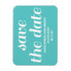 Imã salve a data de charme em turquesa e branco com design de tipografia química. Esta tendência e imã salve a data moderna é fácil de personalizar com seus detalhes de casamento. Para obter mais opções de personalização, clique no botão Personalizar Ti.