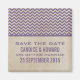 Moderno com uma reviravolta antiga é esta Imã salve a data Chic Chevron. Este design apresenta um plano de fundo de aparência de papel antigo e um padrão de gesso zigzag em roxo. Fácil de personalizar, simplesmente adicione seus detalhes de casamento. Clique em "Personalizar" para encontrar mais opções de personalização.