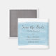 Tendy and na moda Watercolor Imã salve a data com um retângulo com a cor d'água escoada parece azul. Esta imã salve a data elegante e moderna é fácil de personalizar com seus detalhes de casamento. Para obter mais opções de personalização, clique no botão Personalizar Ti.