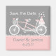 Design de casamento divertido com uma flor coberta de bicicleta tandem. Um bolo de casamento de três níveis está na pára-choque e dois pássaros amantes com corações completam o tema. Personalize presentes e artigos de papelaria com o seu próprio texto personalizado. Em T-shirts, sacos de tote, convites para chás de casamento, guarde os anúncios de data, correio, planejadores de casamento, guardas e muito mais! PinkInkArt original!