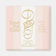 Blush Save the Date. com noiva de tipografia dourada, iniciais de Groom.