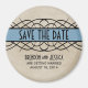 Imã salve a data de Borda Flourish Elegante e elegante com um olhar de fundo vintage e uma espiral de rico e borda de faixa azul-creme. Este na moda é a escolha perfeita para anunciar seu casamento inspirado no deco. Fácil de personalizar, basta adicionar os detalhes do casamento nos campos de texto fornecidos. Clique em "Personalizar" para encontrar mais opções de personalização.