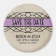 Imã salve a data elegante e elegante de borda florescente, com uma visão de fundo vintage e uma espiral de rico e uma borda de faixa roxa leve. Este na moda é a escolha perfeita para anunciar seu casamento inspirado no deco. Fácil de personalizar, basta adicionar os detalhes do casamento nos campos de texto fornecidos. Clique em "Personalizar" para encontrar mais opções de personalização.