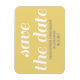Imã salve a data de charme em amarelo e branco com design de tipografia química. Esta tendência e imã salve a data moderna é fácil de personalizar com seus detalhes de casamento. Para obter mais opções de personalização, clique no botão Personalizar Ti.