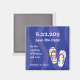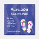 Diversão e design moderna. Excelente para um casamento de primavera ou verão. Ideal para uma praia ou casamento ao ar livre. Apresenta chinelos com diferentes padrões sobre um fundo azul escuro.