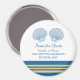 Conchas náuticas elegantes e clássicas Imãs salves a data com um par de conchas simples e uma série de faixas em azul escuro marinho e ouro. Este tema de praia náutica, exceto a data, pode ser facilmente personalizado com seus detalhes de casamento. Para obter mais opções de personalização, clique no botão Personalizar Ti.