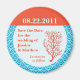 Imã salve a data moderna e elegante. Excelente para um tema marinho ou náutico. Possui um coral vermelho sobre um fundo azul claro e uma borda padrão. Combinação de cor coral e turquesa. Trendy, ainda elegante. Adicione a sua própria redação. Também pode ser personalizado para uma festa de aniversário ou evento semelhante. Convite de casamento, selo postal, selo de envelope, adesivo de favor de partido, classificador de planejamento de casamento e outros produtos disponíveis nesta loja.