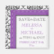 Trendy e Imã salve a data moderna para seu casamento. Apresenta uma design/ilustração com pontos roxos sobre uma cor damasco preta e branca.
