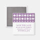Simples e elegante Imã salve a data Moderna em roxo com um padrão deco de na moda. Esta imã salve a data chic é fácil de personalizar com seus detalhes de casamento. Clique em "Personalizar" para encontrar mais opções de personalização.