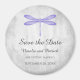 Imã salve a data elegante e simples apresentando uma libélula roxa contra um fundo de cinza. Esta design é uma escolha única para anunciar um casamento moderno. Fácil de personalizar com seus detalhes de casamento. Clique em "Personalizar" para encontrar mais opções de personalização.