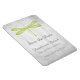 Elegante e simples, salve o ímã flexível de data que apresenta uma libélula verde contra um fundo de nuvens de cinza. Esta design é uma escolha única para anunciar um casamento moderno. Fácil de personalizar com seus detalhes de casamento. Clique em "Personalizar" para encontrar mais opções de personalização.
