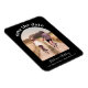 Guarde a manutenção do ímã de anúncio de data mínima e elegante com a sua fotografia num quadro de imagem arquivada contra um fundo preto. Personalize a saudação "salve a data" em uma simples tipografia branca moderna, seus nomes em tons brancos e sua data e local de casamento.