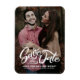 Imã salve a data fotográfica totalmente personalizável com a cobertura de script retrorreflector com o padrão de trás das listras preto e branco. Esta imã salve a data fotográfica está disponível como cartão plano e cartão postal. Uma maneira perfeita de anunciar sua data de casamento para sua família e amigos.
