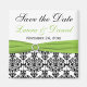 Esta imã salve a data preta e branca, com uma fita verde FAUX e broche de joias, combina com o convite de casamento mostrado abaixo. Se houver outros itens correspondentes necessários, envie seu pedido por e-mail para niteowlstudio@gmail.com.