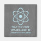 Imã salve a data de quadro atômico giro e nerd apresentando um símbolo atômico simples em azul claro sobre um fundo de aparência de quadro. Esta imã salve a data engraçada e engraçada é perfeita para anunciar seu casamento temático de ciência! Fácil de personalizar, basta adicionar os detalhes do seu casamento nos espaços fornecidos. Clique em "Personalizar" para encontrar mais opções de personalização.
