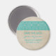 Imã salve a data rustica simples e elegante com um papel texturizado vintage, parece fundo e um padrão de renda doce e delicado em turquesa. Fácil de personalizar, simplesmente adicione seus detalhes de casamento. Clique em "Personalizar" para encontrar mais opções de personalização.