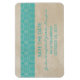 Lace Russo Simples e elegante Salve o Magnete Flexi Premium de Data com um papel texturizado de vintage e uma borda de padrão de renda doce e delicada em turquesa. Fácil de personalizar, simplesmente adicione seus detalhes de casamento. Clique em "Personalizar" para encontrar mais opções de personalização.