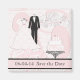 Adicione seus nomes e a data do casamento à nossa bela imã salve a data de Roupas de Casamento facilmente antes de pedir. Procure os convites de casamento correspondentes, obrigado notas, cartões salve a data, e muito mais com este bonito vestido de casamento rosa, smoking, bolo de casamento e design de flores.
