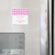 Simples mas elegante Imã salve a data de Houndstooth com um fundo de padrão de houndstooth cor-de-rosa e branco. Fácil de personalizar com seus detalhes de casamento. Para obter mais opções de personalização, clique no botão Personalizar Ti.