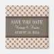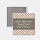 Imã salve a data de latice de tendências e Ricos chic apresentando um círculo de na moda e um padrão de diamante estudado sobre um fundo de pêssego vibrante com uma ampla borda marrom de dois tons. Esta imã salve a data elegante é perfeita para anunciar seu casamento moderno. Fácil de personalizar, basta adicionar os detalhes do casamento nos campos de texto fornecidos. Clique em "Personalizar" para encontrar mais opções de personalização.