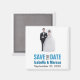Se você ama kitsch, mas definitivamente são todos modernos, esta é uma imã salve a data excelente que pode enviar um pouco de sorriso. Apresenta-se uma noiva retrorativa e uma cúpula de bolo nobre, mas o tratamento de tipo é contemporâneo. Disponível em cores alternativas com produtos correspondentes.