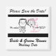 Um estilo retrô Salve o ímã de casamento de Data com um desenho de linha preta de uma noiva e noiva e um texto que diz "Salve a Data!" e "Ele perguntou! Eu disse sim!" Você pode adicionar facilmente sua data de casamento e nomes a esta Imã salve a data personalizável.