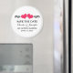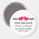 Imã salve a data elegante e mesquinha de Corações Elegantes, com uma rico de borda de espiral adornada com um par de corações magenta. Esta imã salve a data moderna é a escolha perfeita para anunciar seu casamento chique e elegante. Fácil de personalizar, basta adicionar os detalhes do casamento nos campos de texto fornecidos. Clique em "Personalizar" para encontrar opções adicionais de personalização.