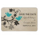 Doce e caprichosa Floral Lovebird Salva o Premium Flexi Magnet com data apresentando uma cascata de flores em uma videira suja e um par de bezerros de turquesa com uma safra parecem texturizados como fundo de arte digital em bege. Esta imã salve a data adorável é perfeita para anunciar seu casamento de primavera ou verão. Fácil de personalizar, simplesmente adicione seus detalhes de casamento. Clique em "Personalizar" para encontrar mais opções de personalização.