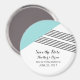 Imã salve a data Geométrica Moderna e moderna com triângulo turquesa e sotaque fino. Este ímã simples, mas elegante, está preparado para ser facilmente personalizado com as suas informações de casamento. Localize mais opções de personalização clicando em Personalizar.