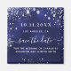 Uma Imã salve a data moderna e elegante para um casamento. Um fundo azul marinho decorado com pó falso de cinza prateada. A cor azul é irregular. Personalize e adicione uma data e nomes. O texto: Salvar a Data é gravado com um script de estilo com letra de tendência grande.
