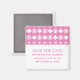 Simples e elegante Imã salve a data moderna em cor-de-rosa com um padrão deco de na moda. Esta imã salve a data chic é fácil de personalizar com seus detalhes de casamento. Clique em "Personalizar" para encontrar mais opções de personalização.