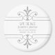 Rico simples e elegante Imã salve a data ornamentais em cinzas e branco com uma sofisticada fronteira florescente decorativa do estilo de arte. Fácil de personalizar, basta adicionar os detalhes do casamento nos campos de texto fornecidos. Clique em "Personalizar" para encontrar mais opções de personalização.