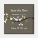 Imã salve a data com pássaros apaixonados e pansias em fundo de lama. Copyright © 2009 PixDezines.com e PixDezines em zazzle.com