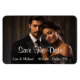 Imã salve a data personalizada mostrada com um exemplo de impressão fotográfico de um casal. Personalize este item e altere a foto e data do exemplo para o seu. Imagem de estoque de imagem licenciada all-free-download.com