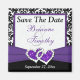 Esta imã salve a data de casamento tema damasco preto e branco tem uma fita roxa IMPRESSA com um par de joias de diamante IMPRESSAS e a brilha FAUX juntou corações que combinam com o convite de casamento mostrado abaixo. O texto é personalizável para que você possa alterá-lo para dizer "Obrigado" e usá-lo como um favor de casamento. Se você precisar de outros itens correspondentes neste design, envie seu pedido por e-mail para niteowlstudio@gmail.com.