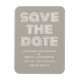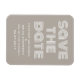 Imã salve a data retrorativa em bege e branco com uma design de tipografia moderna funky. Esta tendência e imã salve a data de na moda é fácil de personalizar com seus detalhes de casamento. Para obter mais opções de personalização, clique no botão Personalizar Ti.