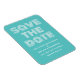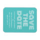Imã salve a data retrô em turquesa e branco com uma design de tipografia moderna funfa. Esta tendência e imã salve a data de na moda é fácil de personalizar com seus detalhes de casamento. Para obter mais opções de personalização, clique no botão Personalizar Ti.